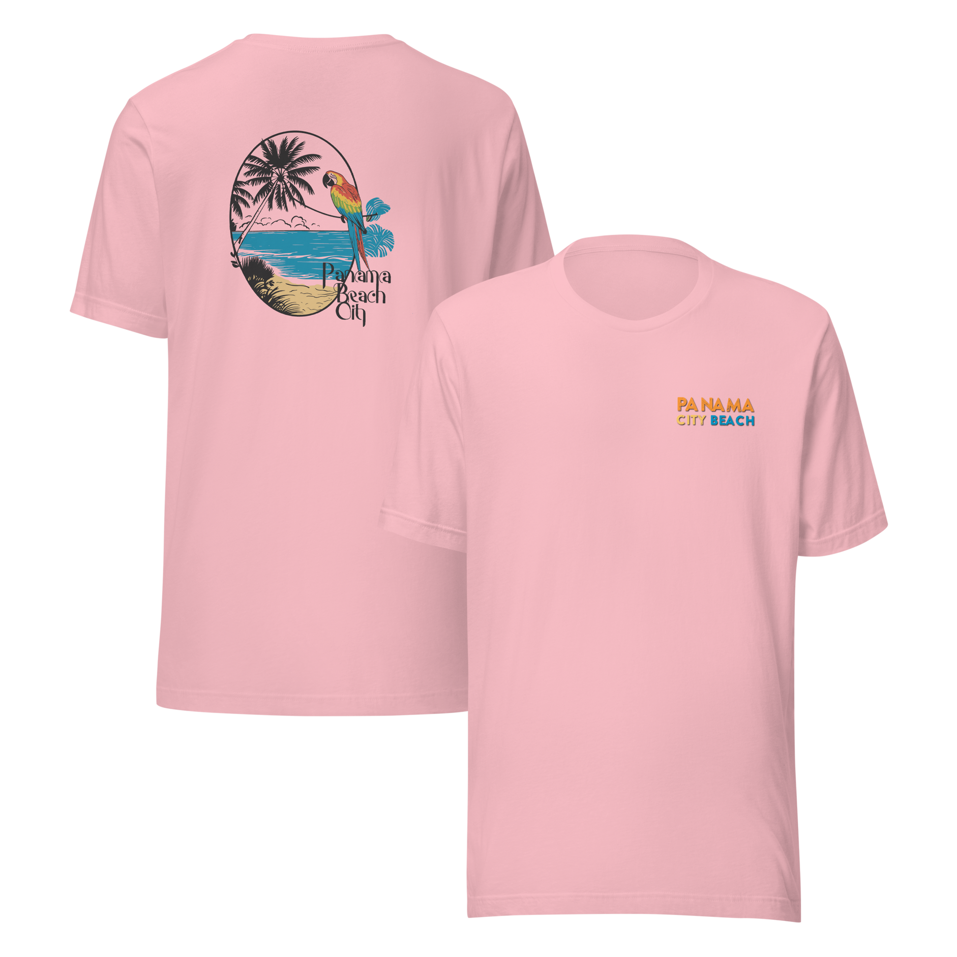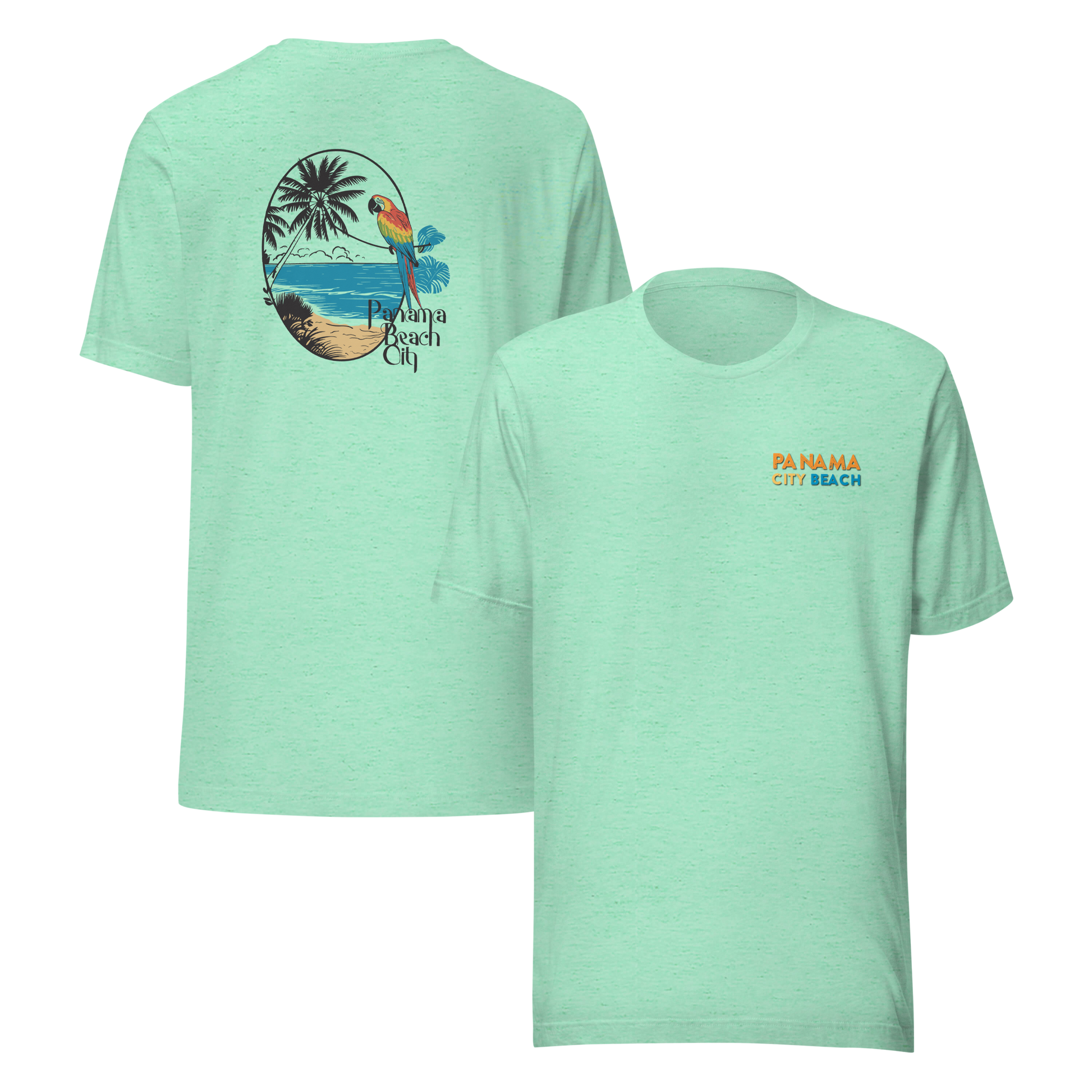 Celebrate vibrant beach days with our "Parrot Perch" t-shirt from Apparel PCB. This delightful tee features a colorful parrot majestically perched above the iconic "Panama City Beach" lettering, set against a beautiful beach backdrop that captures the essence of tropical paradise. The vivid hues of the parrot add a playful touch to the soft, sand-colored canvas of the shirt, evoking the lively spirit of the coast. Perfect for any beach lover or souvenir collector, this shirt combines comfort with a splash of fun, making it an excellent way to carry a piece of Panama City Beach wherever you go.